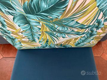 Puff poggiapiedi rettangolare blu con cuscino fanstasia floreale sfoderabile. Struttura e piedini in legno. 80x70x35 Ritiro a mano zona Napoli centro