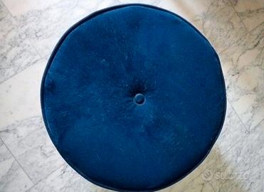 Pouf poggiapiedi in velluto blu diametro 50 h35. Zona casetta Mattei bravetta
