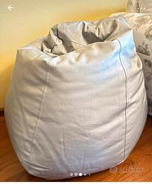Pouf Poltrona Sacco per Bambini, Pouf da Salone, Ecopelle, Pieno di Pallini di Polistirolo, Impermeabile, Certificato, color argento