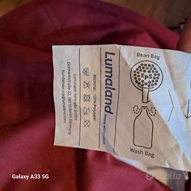 Pouf o poltrona sacco, completamente lavabile estraendo il contenuto in polistirolo come da foto, si può anche aggiungere se lo si desidera più rigido. Di buona fattura, comprato 2 anni fa, dimensioni medie, usato per qualche giorno poi messo in un angolo in salotto. Ora mia figlia ha 14 anni quindi il pouf non lo guarda nemmeno. Non spedisco perché è molto ingombrante, non sta nelle misure standard. Abito a Moglia di Mantova.