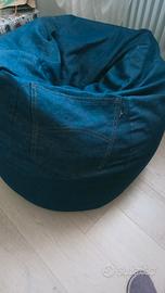 Pouf.....puf... in tessuto di jeans con cerniera per sfoderarlo e tascona . il colore è blu jeans .. diametro 80 cm è davvero grande e comodo.