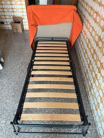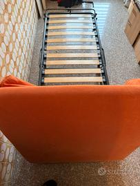 Vendo questo pouf che diventa un letto singolo. Il pouf è un metro x un metro, il tessuto si puo togliere ed è dotato di rotelle per muoverlo agevolmente.