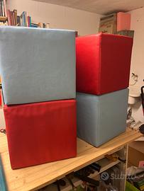 Pouf rossi e azzurri