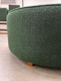 Pouf rotondo in tessuto, colore verde oliva, diametro cm 100, altezza cm 47.