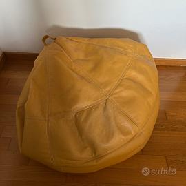 Pouf sacco in pelle color cuoio/miele in buone condizioni. Nessun taglio o danno strutturale, solo normali segni d’uso.