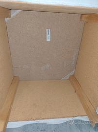 pouf IKEA, modello Solsta Pällbo, colore panna, il rivestimento è in tessuto che può essere rimosso per il lavaggio. è quadrato, le dimensioni sono circa 38 x 38 cm con un'altezza di 38 cm.