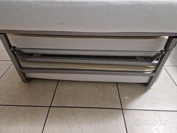 Il pouf letto AL si trasforma facilmente in un letto singolo decisamente comodo, dotato di rete elettrosaldata in acciaio e di materasso in espanso.