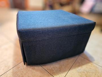 Pouf versatile: ampia seduta quadrata (cm 77x77x43h) utilizzabile anche come poggiapiedi, si trasforma facilmente in un letto singolo, con materasso assemblato lungo complessivamente 202cm e alto 10cm, imbottitura semirigida dal giusto sostegno.