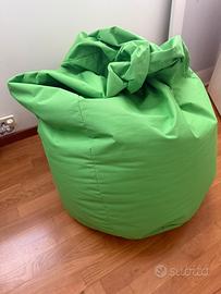 Vendo Pouf a Sacco Morbido in Poliestere con Imbottitura in Palline di Polistirolo. Dimensione Mega 135cm di altezza x 85cm di diametro. Colore Verde
