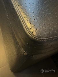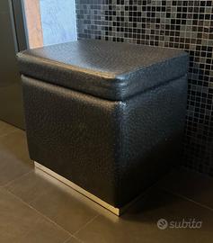 Pouff contenitore / porta biancheria sporca, imbottito e rivestito in simil pelle stampata anguilla nera. Interno laminato nero. Il contenitore è molto capiente. Dotato di cerniere su un lato nascoste.