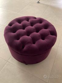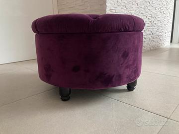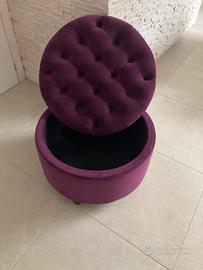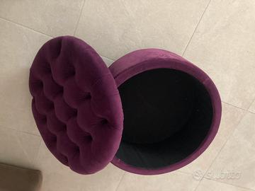 Pouff contenitore rotondo di velluto con i poedini in legno. Misura diametro 64cm e altezza 42cm. Consegna solo a mano