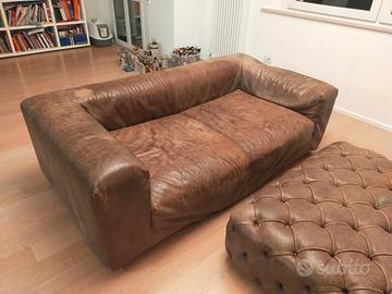 Vendo pouff pelle invecchiata, buone condizioni..difetti: macchia di pennarello verde e qualche bottone da ripristinare. Nel prezzo incluso anche divano sempre in pelle invecchiata ma con spalla sinistra rotta e macchia sulla spalliera posteriore.
