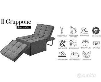 Pouf Letto con Materasso Singolo Elegantissima Soluzione Salva Spazio, comodo pratico e bellissimo adatto per tutti gli ambienti e per tutti gli usi. Fodera del rivestimento completamente sfoderabile e lavabile a 30° colore grigio