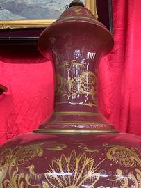 Spettacolare poutiche in bronzo e porcellana dipinta a mano la base misura 30x30 e ha un’altezza di circa 140cm