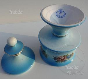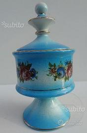 Bellissimo oggetto in ceramicaa decorata "entiérement fait à la main" risalente a metà del novecento, oggetto decorato a mano con composizioni floreali arricchito da filetti in oro sui bordi, con coperchio; può essere usato liberamente come porta confetti, biscottini, ecc.