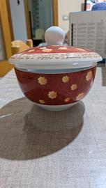 Dolcezza e stile per le tue feste! Vendo bellissima Praliniera originale THUN della linea natalizia "Al Volo". 🍬✨ Realizzata in pregiata porcellana decorata a mano, è l'accessorio ideale per servire cioccolatini, bonbon o piccoli dolci durante il periodo di Natale, o semplicemente come raffinato oggetto d'arredo. Dettagli dell'oggetto: Marca: THUN (Originale). Design: Fondo rosso con stelle gialle/oro e bordo decorato con scritte calligrafiche a tema natalizio. Materiale: Porcellana di alta qualità (linea Al Volo). Condizioni: Pari al nuovo. Nessuna sbeccatura, graffio o segno di usura. I colori sono brillanti e il coperchio è perfetto. Uso: Perfetta come idea regalo o per completare il tuo set tavola natalizio THUN.