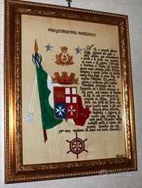 QUADRO RAFFIGURANTE STEMMA ARALDICO ,FREGIO E MOSTRINE ARTIGHIERI - TRAMAT - SU TRICOLORE E PREGHIERA SCRITTA INTERAMENTE A MANO. L' IMMAGINE NON E' NE STAMPATA, NE TANTO MENO DECOUPAGE, MA DIPINTA CON COLORI ACRILICI E REALIZZATO SU SUPPORTO LIGNEO. LA SPEDIZIONE AVVERRA' A MEZZO CORRIERE ESPRESSO CON NUMERO TRACCIABILITA' PACCO, ANCHE IN CONTRASSEGNO O CONSEGNA A MANO.