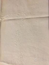 Antico lenzuolo matrimoniale da sposa in pregiatissimo lino (tela d'Olanda) interamente