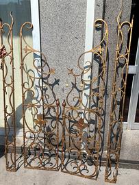Pregiato Cancello in ferro battuto da interni in ottime condizioni finiture dorate . Composto da 4 parti. 2 montanti da fissare al muro con tasselli misure 180x15 e 2 battenti misure 170x45. Caricabile in un’auto di dimensioni mediograndi . Trasporto a cura e spese dell’acquirente