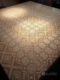 Pregiato copritavolo / tenda / copriletto in Filet di cotone lavorato a mano, cm. 236 x 204.