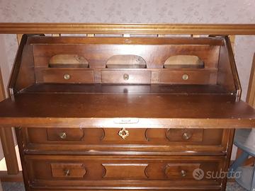 Ribalta mobile scrittoio scrivania secrétaire comò in legno stile antico ribaltina con chiave tre cassettini tre cassetti misure larghezza max base 90cm larghezza parte alta 86cm altezza 92cm ingombo massimo profondita 38cm