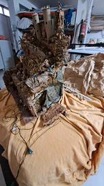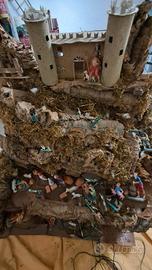 presepe artigianale in sughero completo di statuette e luci, quest'ultime da cambiare qualche lucina , misure 80×70×70 circa. Al modico prezzo di 100 euri