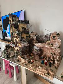 Presepe artigianale in movimento! Materiali polistirene, gesso, legno fatto tutto artigianalmente! Misure larghezza 60 cm lunghezza 113 cm e altezza il punto piu alto 90 cm