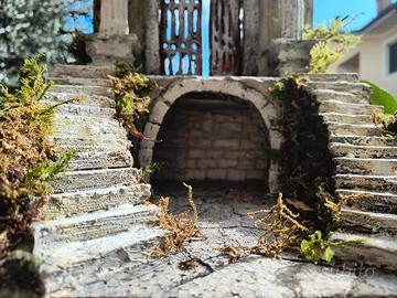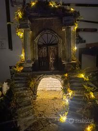 splendido Presepe completamente fatto a mano completo di luci misure 29x29x46