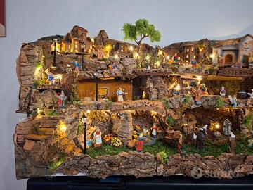 Vendo un magnifico presepe Artigianale completamente fatto a mano, curato nei minimi dettagli con Pastori e statuine Originali provenienti da San Gregorio Armeno. Tutti i materiali sono di ottima qualità, ogni dettaglio è curato, inoltre è dotato di un sistema di illuminazione a basso consumo che rende l'atmosfera ancora più magica!