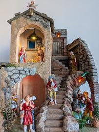 Presepe artigianale fatto a mano con poliuretano e gesso, finalizzato con colori acrilici. Statue Landi Moranduzzo INCLUSE da 8 cm. Dimensioni 25x25, altezza 40 cm circa.