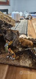 Vendo presepe artigianale in perfette condizioni, completo di *13 statuine mobili* (non incollate), capanna con dettagli in sughero e paglia, recinto con animali e *luci intermittenti funzionanti* sul fuocherello.