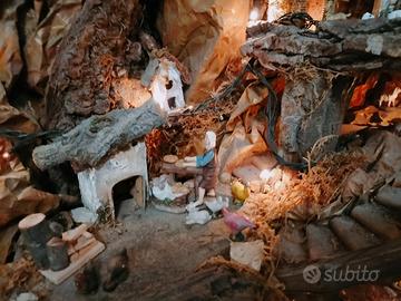 presepe artigianale fatto interamente a mano. vi è una fontana funzionante ed un forno con la luce che si accende. compreso di statuine e luci. alcuni gruppi di statuine sono autentici napoletani. Misure 120 x 60 x 80