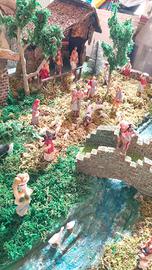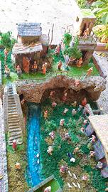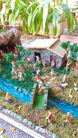 Presepe artigianale completo fatto a mano 180cm di lunghezza x 80cm di larghezza , con luci in tutte le posizioni , con fontana elettrica , con 5 alimentatori che reggono tutta l'elettronica. Statuine mondarluzzo indistruttibili, complete di personaggi . Presepe nuovo appena terminato e pronto all'uso ,