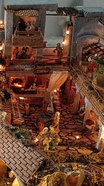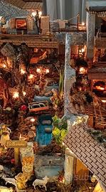 Presepe Artigianale con cascata e motorino acqua incluso, senza personaggi. Serie di luci incorporata.
