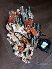 Presepe artigianale in terracotta dipinta, con luci e presa elettrica funzionanti cm 31 L / 25 H / 20 P