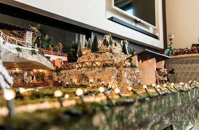- Ambientazioni curate: villaggio, ponte in pietra, montagna con pastori, grotta della Natività e botteghe artigiane