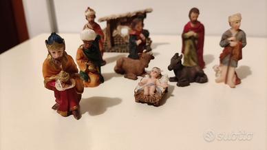 Presepe artigianale napoletano in legno, 40cm x 42cm. Completo di 10 figurine. In perfette condizioni.