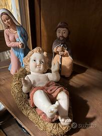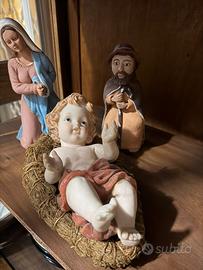 presepe artigianale napoletano Tirri e Capuano – Napoli. Sacra Famiglia composta da Gesù Bambino, Maria e Giuseppe, realizzati in terracotta dipinta a mano. Produzione artigianale tradizionale napoletana, manifattura Tirri e Capuano, come da etichetta originale visibile in foto. Oggetto ideale per collezionisti o per allestimento natalizio tradizionale. ✔ Buone condizioni generali ✔ Oggetto autentico artigianale