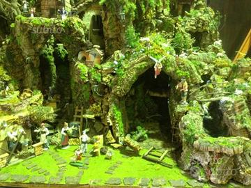 Presepe artigianale originale costruito a Napoli nel quartiere dei presepi, tutto in vero sughero e intelaiatura in legno e basamento in legno rinforzato.