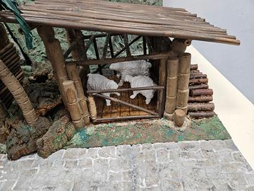 presepe artigianale fatto con tappi di sughero e cannucce di legno. È composto da 3 pezzi scomponibili che misurano 48/44/46 × 40 ,le montagne sullo sfondo sono due pezzi da 75/66 × 21 e sul davanti c'è una striscia di polistirolo da 138 x 21