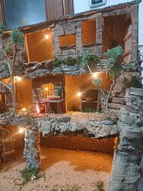 presepe fatto in sughero e legno Con luci all'interno e lampadina effetto fuoco altri dettagli come foto misure /30/50/H49