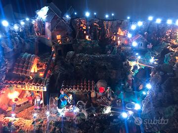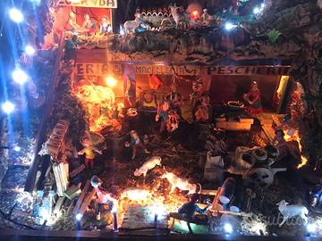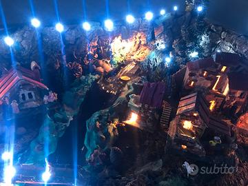 Presepe artigianale legno e sughero compreso di tutti gli accessori pastori, cascata e fontana motorizzate, mulino motorizzato e 2 forni con fiamma integrata, ritiro a mano.