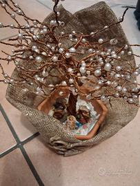 Vendo presepe realizzato a mano con sacco juta, fili di rame, perline, vaso terracotta