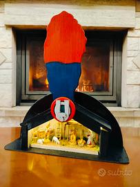 Cappello Lucerna in legno con Presepe artigianale all'interno.