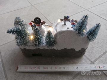Presepe carillon natalizio completo di luci, sistema di rotazione ballerini e musica natalizia, completo di scatola originale e batterie, in perfette condizioni.