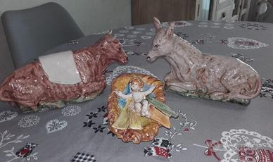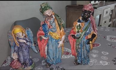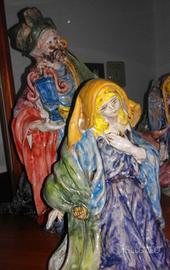 antico presepe in ceramica di Caltagirone 9 pezzi eseguiti mano. una rara opera d'arte . altezza statuine varia dai 18 ai 21cm. idea per un regalo natalizio di gusto e prezioso.
