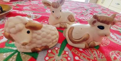 Presepe della collezione villa d'Este. Non presenta graffi o scoloriture . Il bue , l 'asino e l'agnello non sono attaccati . San Giuseppe, Madonna e Bambinello attaccati alla capanna. Non presenta altri pezzi. Altre foto a richiesta. La scatola che lo contiene è rovinata dal tempo. Consegna a mano , prezzo trattabile .