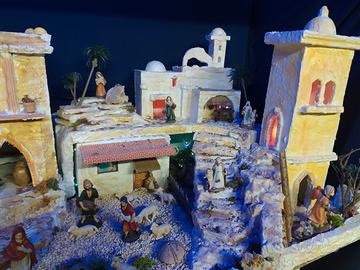 vendo ambientazione per presepe, interamente fatto a mano, costruzione in polistirolo gessato e dipinto a mano. Viene venduto senza personaggi, SOLO COSTRUZIONE.