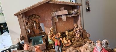 presepe con statuine, oggettistica, capanna con fontanella funzionante. tutto in ottimo stato.