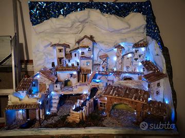 Vendo Presepe artigianale, misura 100x57 alto 58 sfondo chiuso, 87 sfondo aperto completo di luci, e ruscello con pompa, (Sfondo stellato chiudibile)